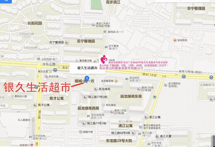 | 南京爱心家政公司的河西分店地址及地图标注 |