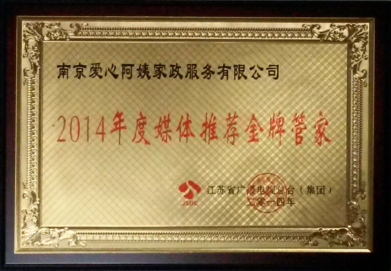 | 庆祝爱心阿姨家政被江苏省广播电视总台评为2014年度媒体推荐金牌管家 |